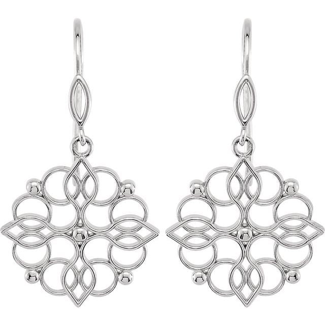Sterling Silver 35.3x18.8 mm Floral Earrings