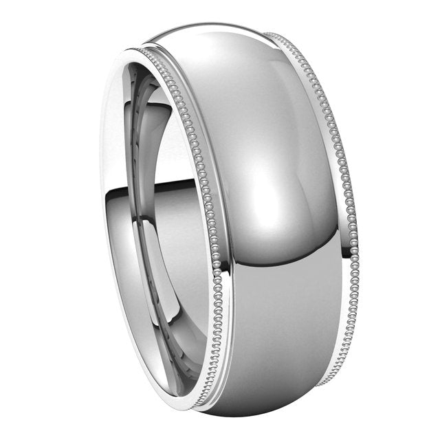 Sterling Silver 8 mm Milgrain Half Round Comfort Fit Edge Band Size 10