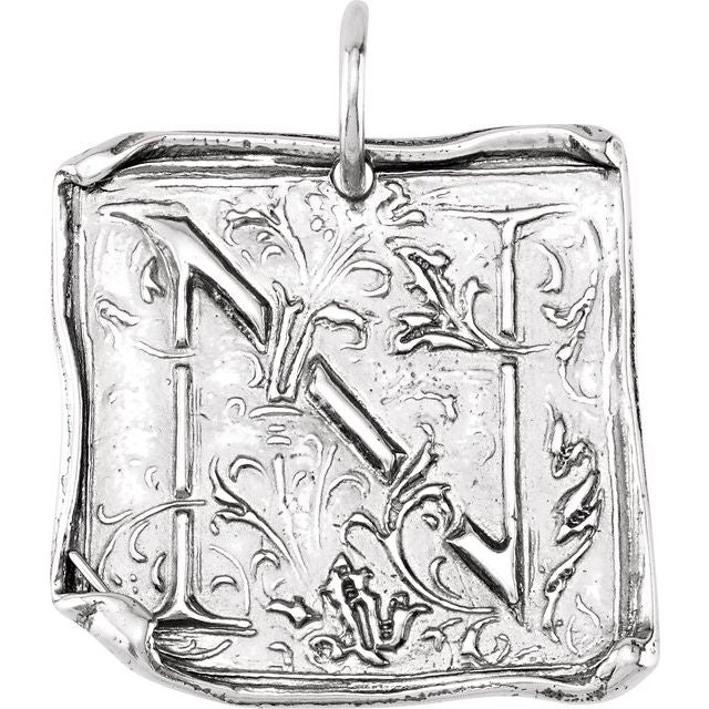 Sterling Silver Posh Mommy® Initial N Vintage-Inspired Pendant