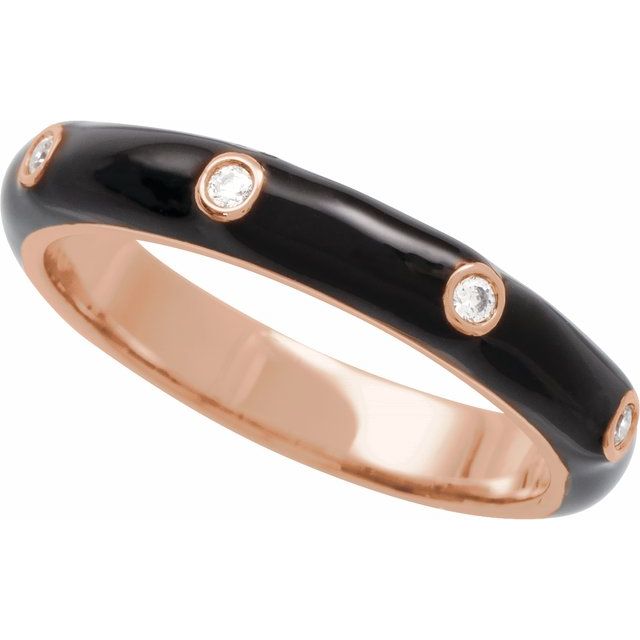 14K Rose .05 CTW Natural Diamond & Black Enamel Ring