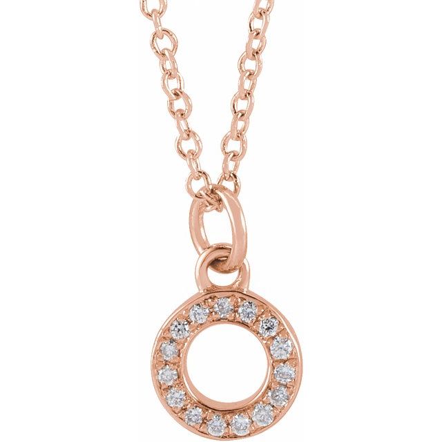 14K Rose .05 CTW Natural Diamond Petite Initial O 16-18' Necklace