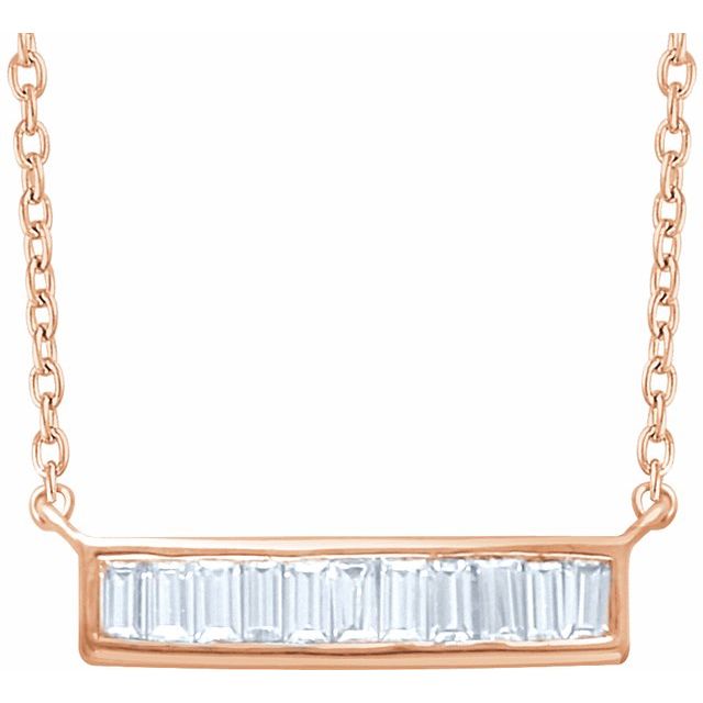 14k Rose 1/4 Ctw Natural Diamond Baguette Bar 18' Necklace