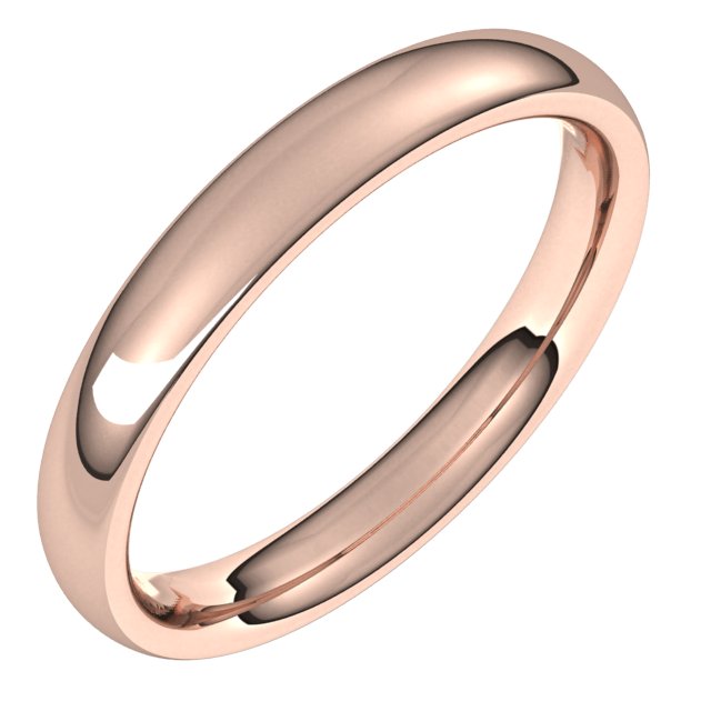 14K Rose 3 mm Comfort-Fit Standard Weight European-Style Band Size 6