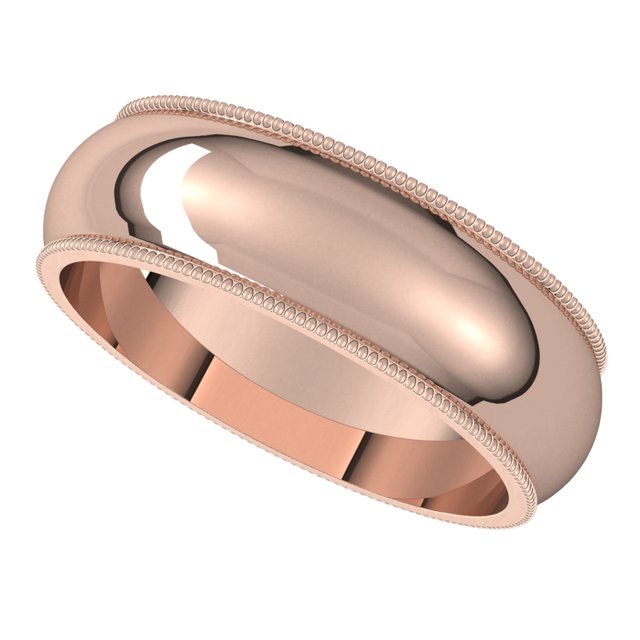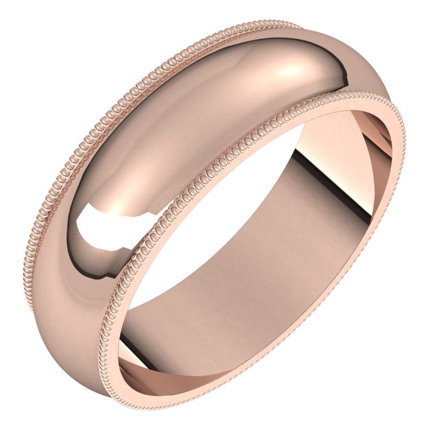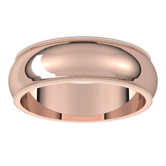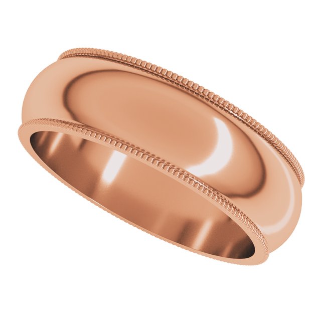 14k Rose 6 Mm Milgrain Half Round Band Size 8
