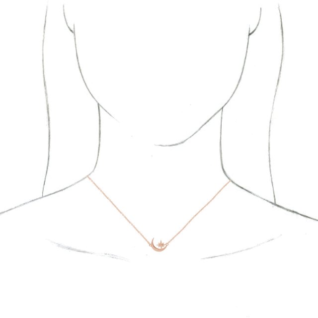 14K Rose Crescent Moon & Star 16-18' Necklace