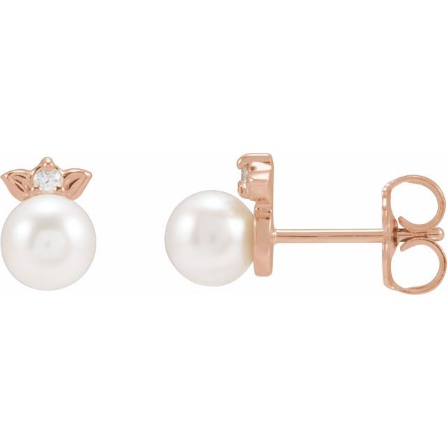 14K Rose Cultured Akoya Pearl & .03 CTW Natural Diamond Floral Earrings