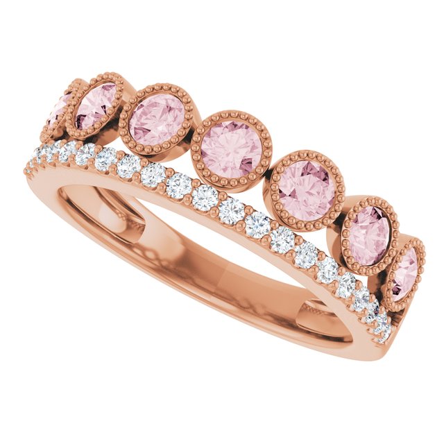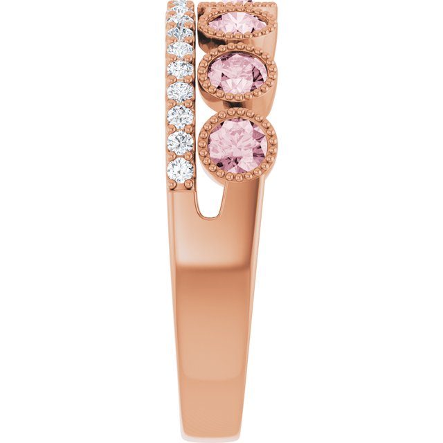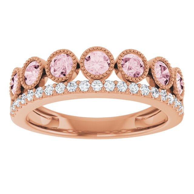 14k Rose Natural Pink Morganite & 1/5 Ctw Natural Diamond Ring