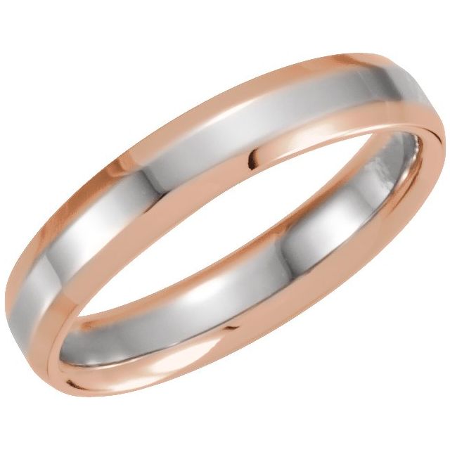14k Rose/white 4 Mm Beveled-edge Band Size 7
