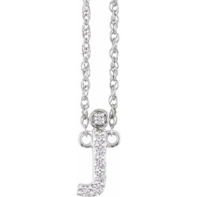 14K White .06 CTW Natural Diamond Lowercase Initial J 16' Necklace