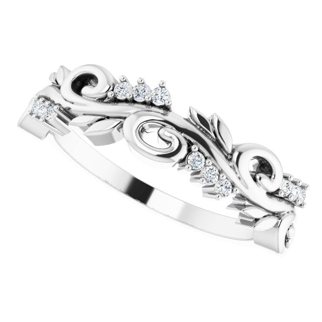 14K White .08 CTW Natural Diamond Floral Anniversary Band