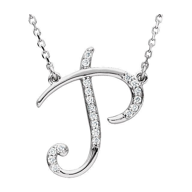 14K White .08 CTW Natural Diamond Initial P 16' Necklace