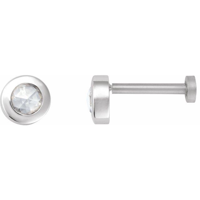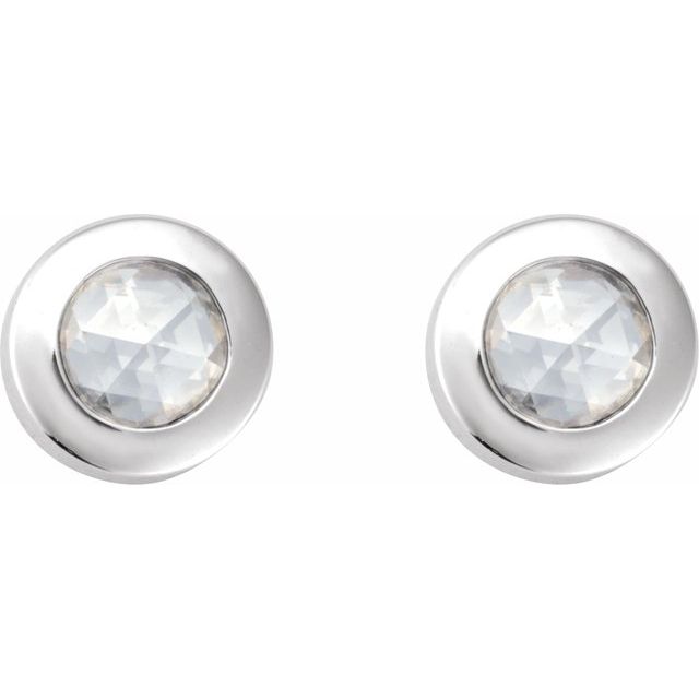 14K White 1/10 CT Rose-Cut Natural Diamond Press Fit Back Stud Earring