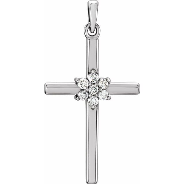 14k White 1/10 Ctw Natural Diamond Cross Pendant