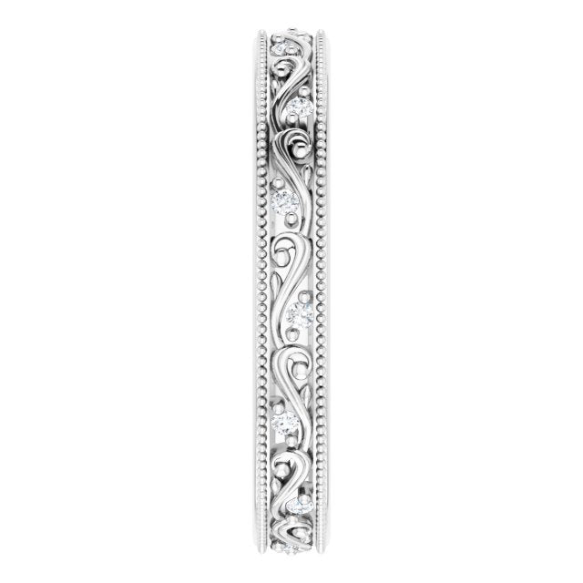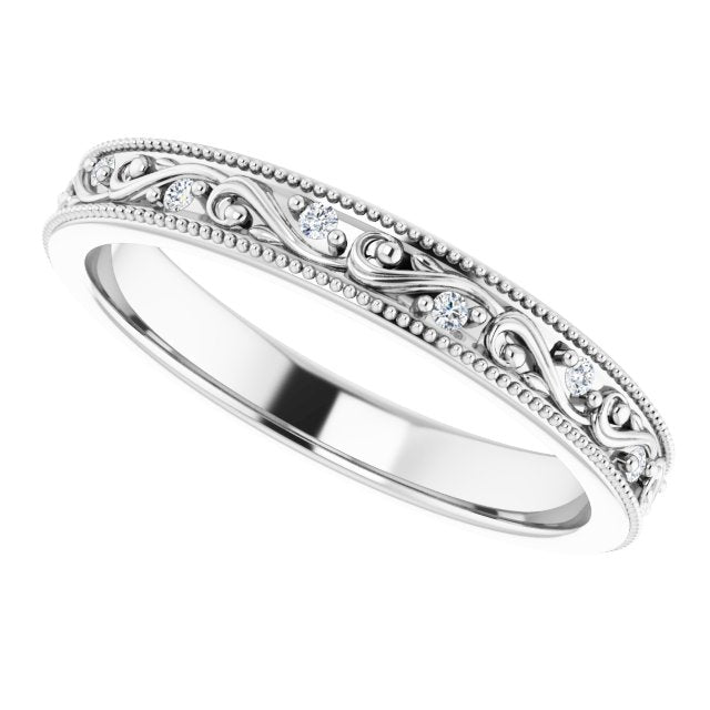 14K White 1/10 CTW Natural Diamond Floral Accented Band