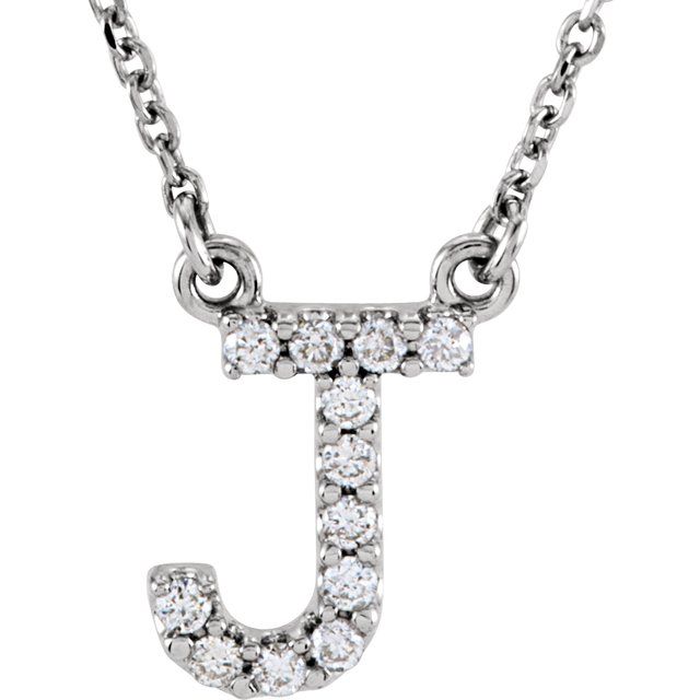 14K White 1/10 CTW Natural Diamond Initial J 16' Necklace
