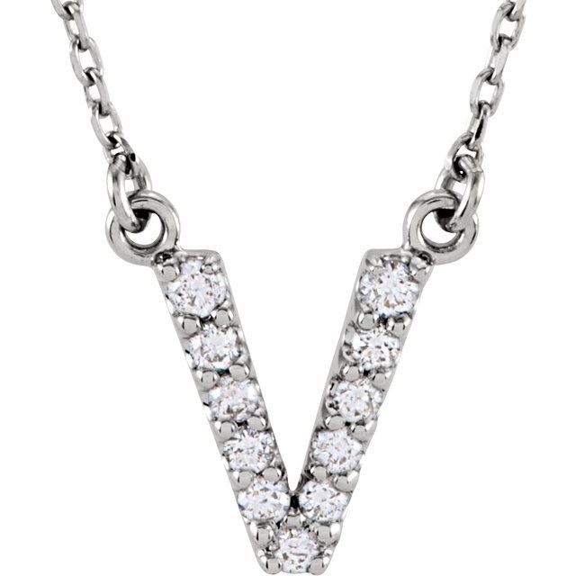 14K White 1/10 CTW Natural Diamond Initial V 16' Necklace