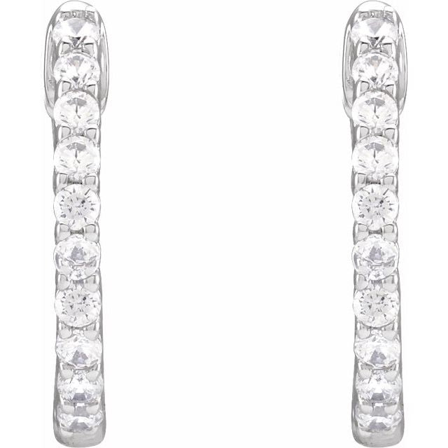 14K White 1/2 CTW Lab-Grown Diamond Inside-Outside Hinged 14.5 mm Hoop Earrings