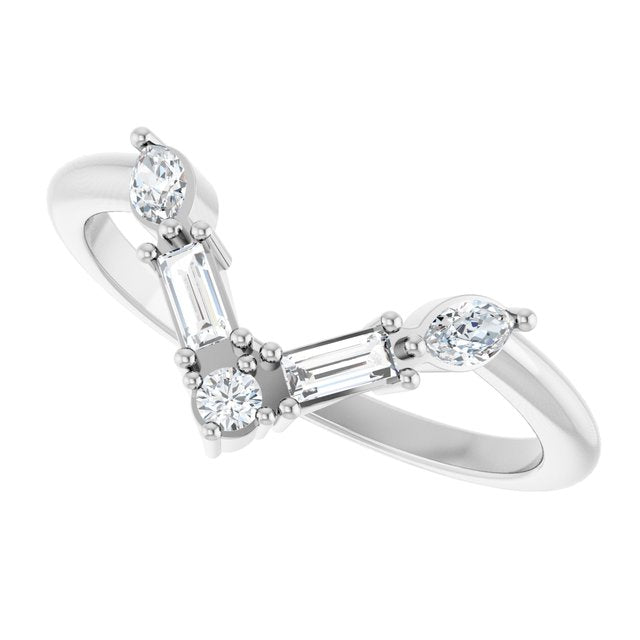 14K White 1/4 CTW Natural Diamond V Bar Ring