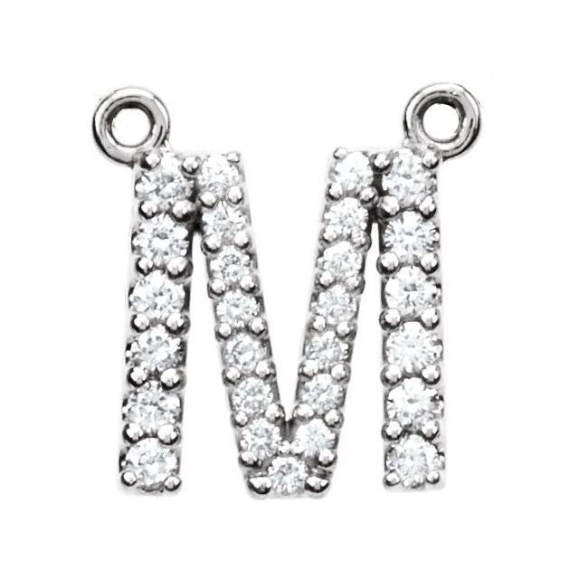 14K White 1/6 CTW Natural Diamond Block Initial M Necklace Center