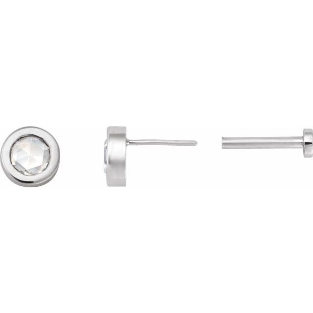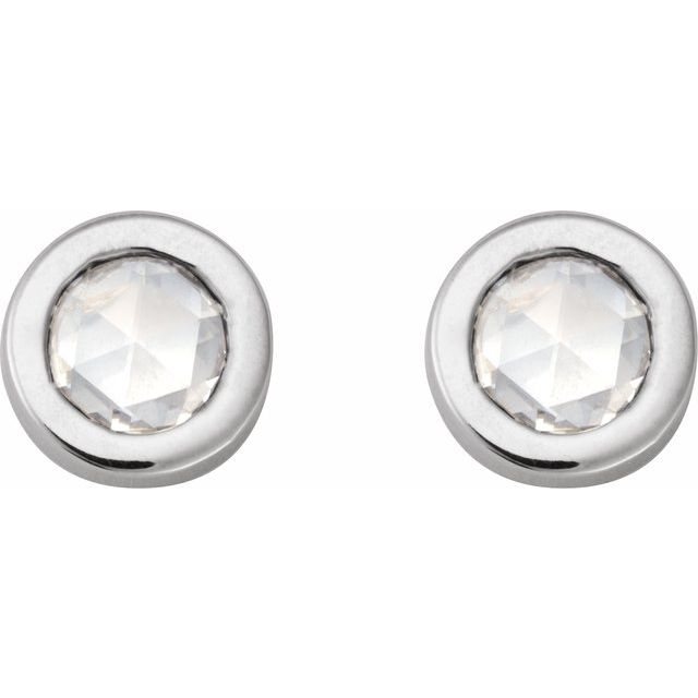 14K White 1/8 CT Rose-Cut Natural Diamond Press Fit Back Stud Earring