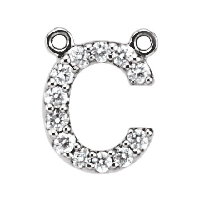 14K White 1/8 CTW Natural Diamond Block Initial C Necklace Center