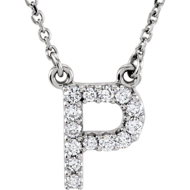 14K White 1/8 CTW Natural Diamond Initial P 16' Necklace
