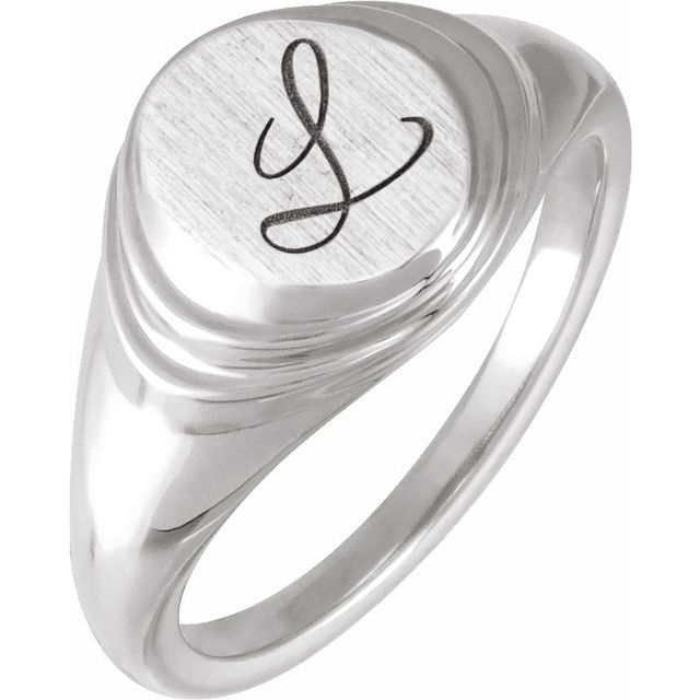 14K White 11.3x14.6 mm Engravable Oval Signet Ring