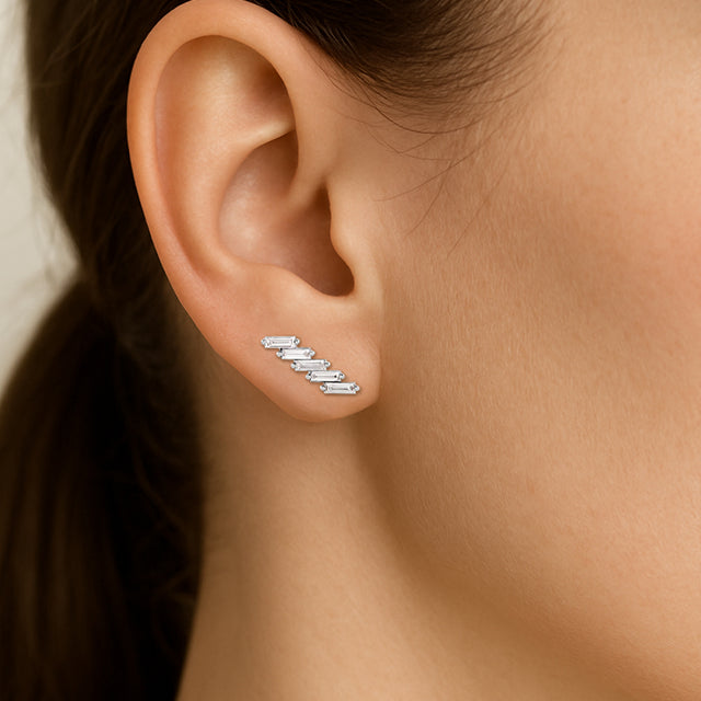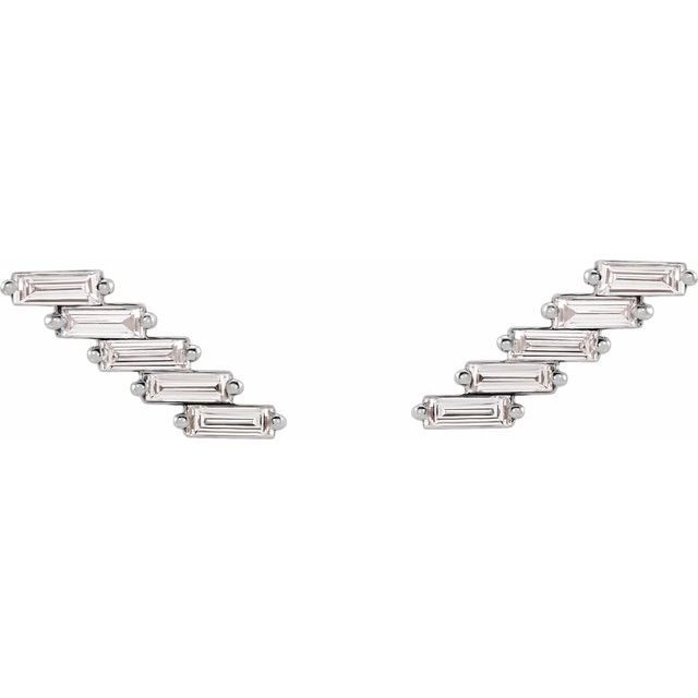 14k White 1/4 Ctw Natural Diamonds Ear Climbers