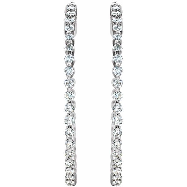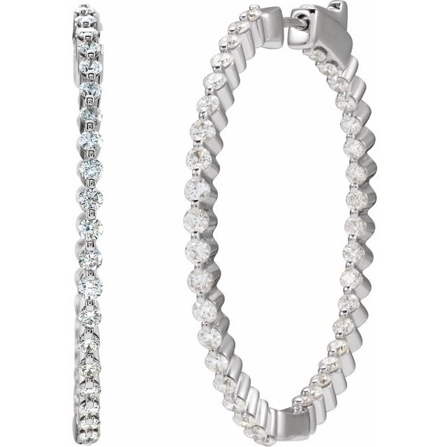 14K White 2 CTW Natural Diamond Inside-Outside Hinged 36.9 mm Hoop Earrings