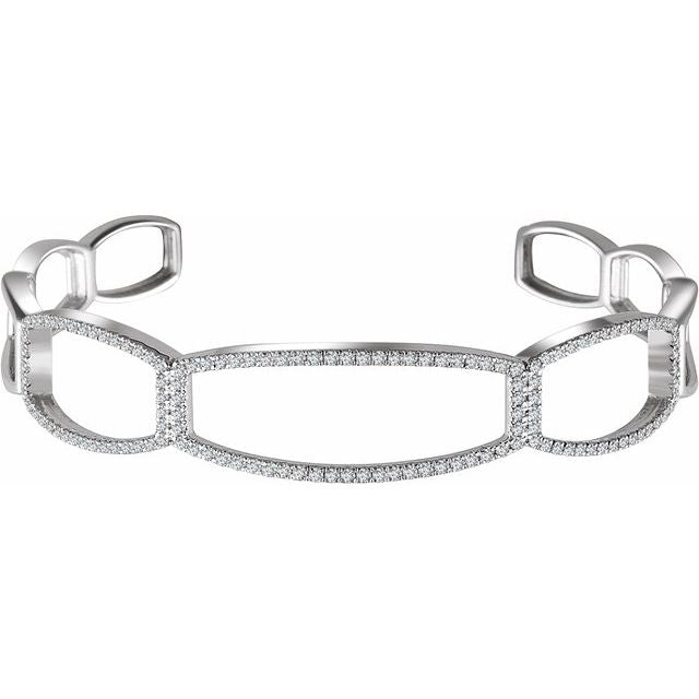 14k White 3/4 Ctw Natural Diamond Cuff 6 1/4' Bracelet