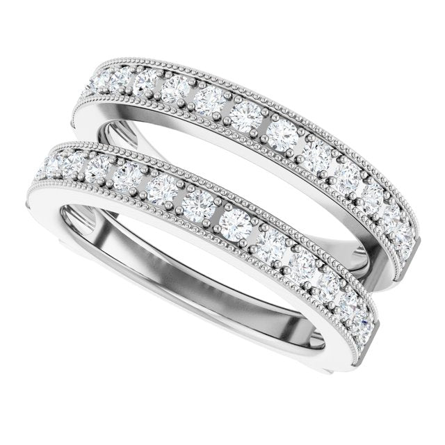 14k White 3/4 Ctw Natural Diamond Milgrain Ring Guard