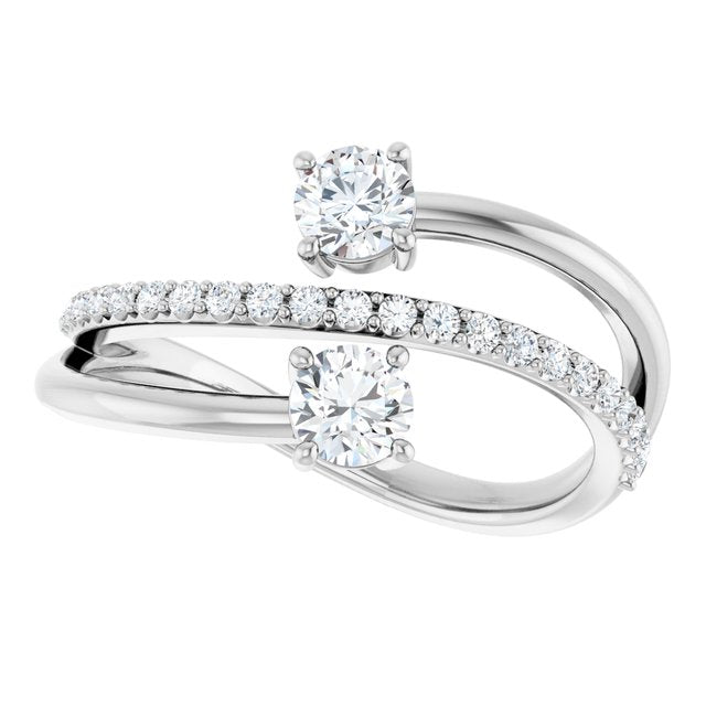 14K White 3/4 CTW Natural Diamond Two-Stone Ring