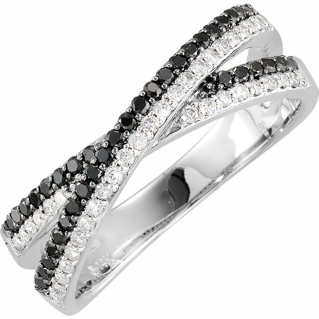 14K White 3/8 CTW Natural Black & White Diamond Criss-Cross Ring