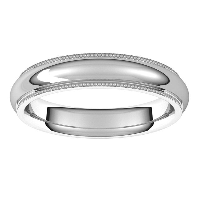 14K White 4 mm Milgrain Half Round Comfort Fit Edge Band Size 11