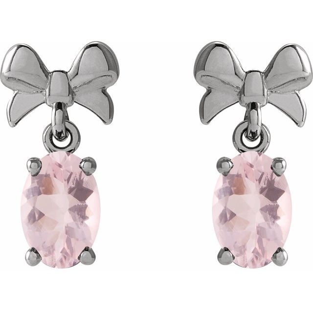 14k White 6x4 Mm Natural Pink Morganite Bow Earrings