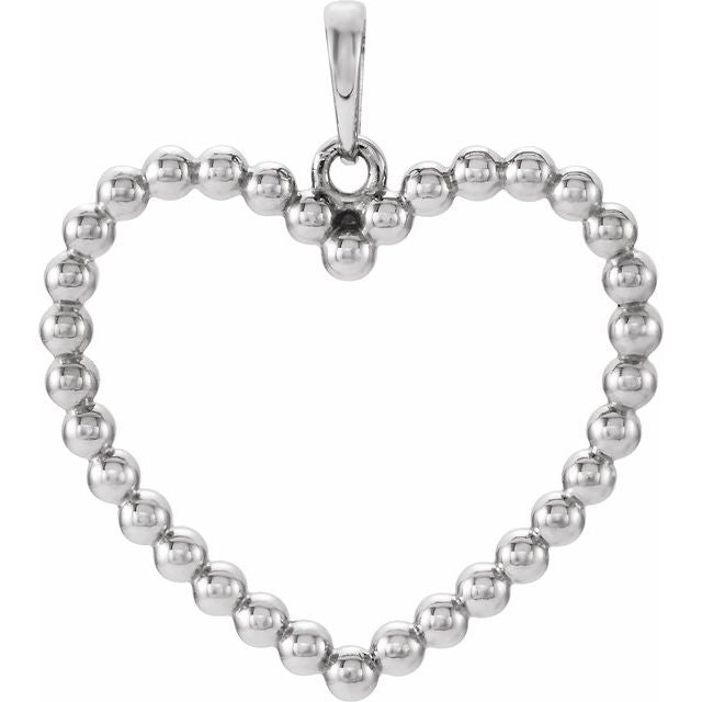 14k White Beaded Heart Pendant