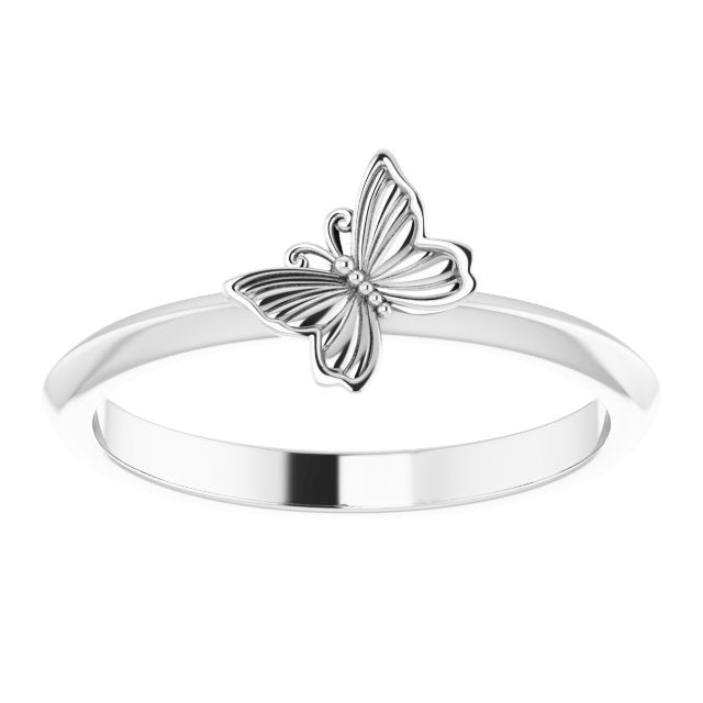 14K White Butterfly Stacking Ring