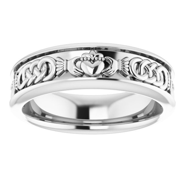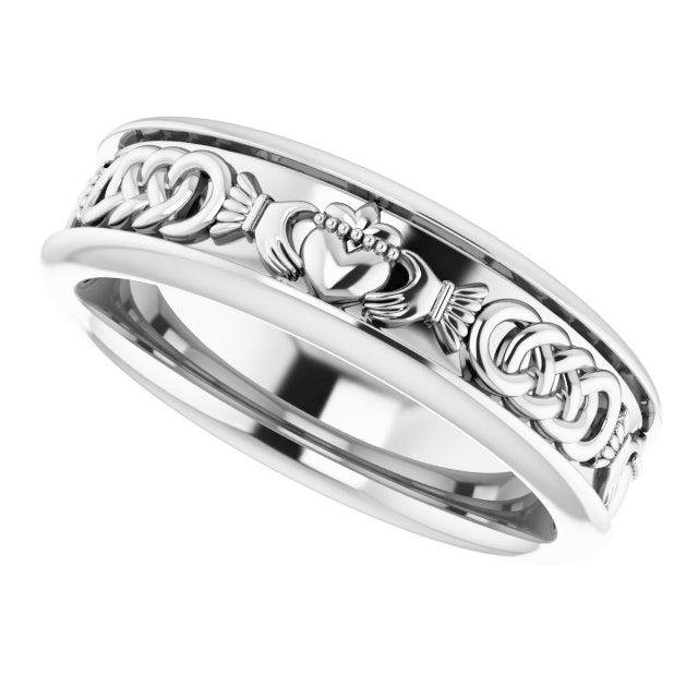 14K White Claddagh Band Sze 7