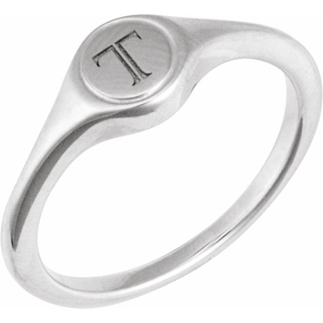 14K White Engravable Round Signet Ring