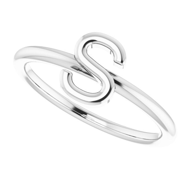 14K White Initial S Ring