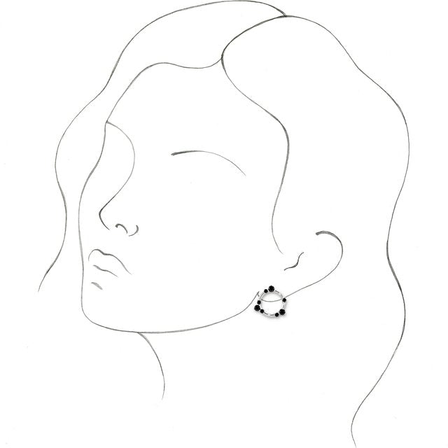 14K White Natural Black Onyx & .03 CTW Natural Diamond Circle Earrings