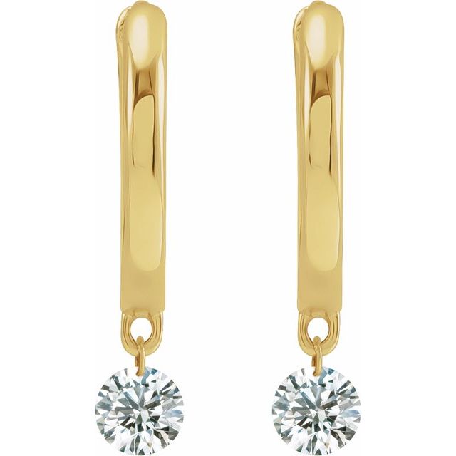 14K Yellow 1/3 CTW Drilled Natural Diamond Hinged Hoop Earrings