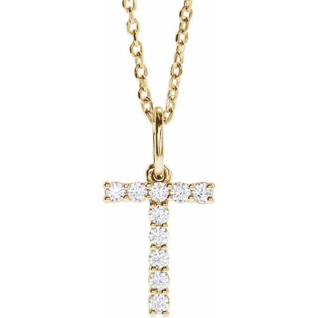 14K Yellow 1/6 CTW Lab-Grown Diamond Initial T 16-18' Necklace