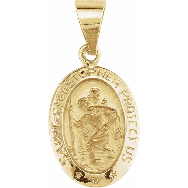14K Yellow 15x11 mm Oval Hollow St. Christopher Medal