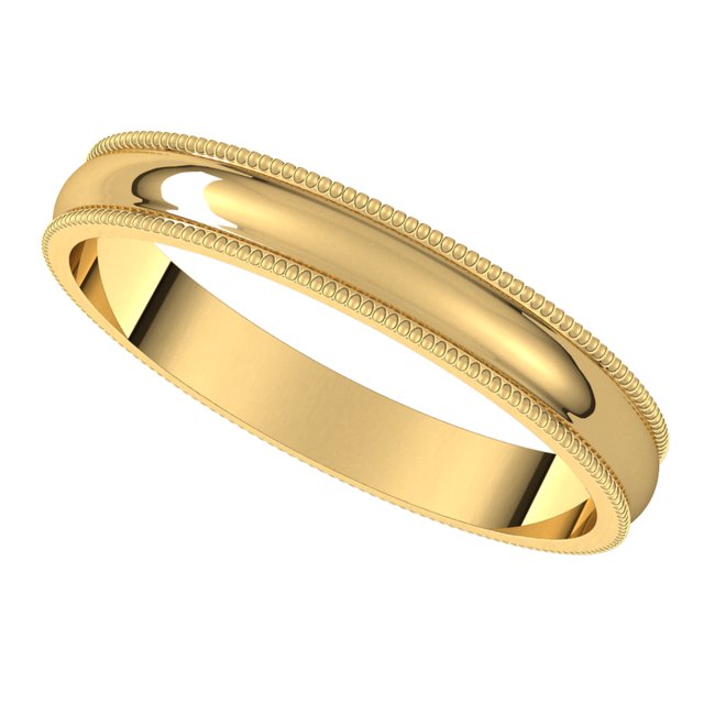 14K Yellow 3 mm Milgrain Half Round Light Band Size 6
