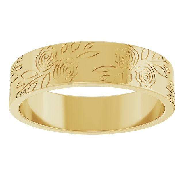14K Yellow 5 mm Rose Pattern Band Size 10
