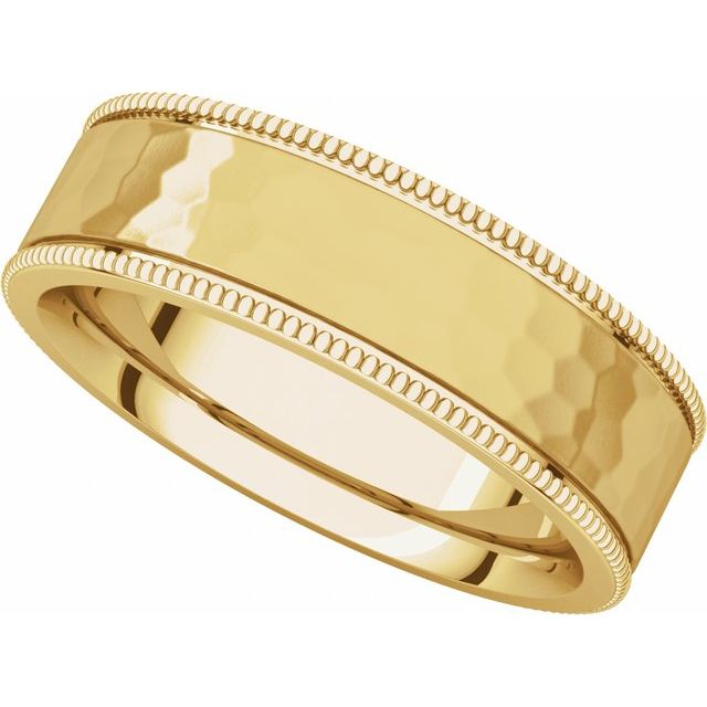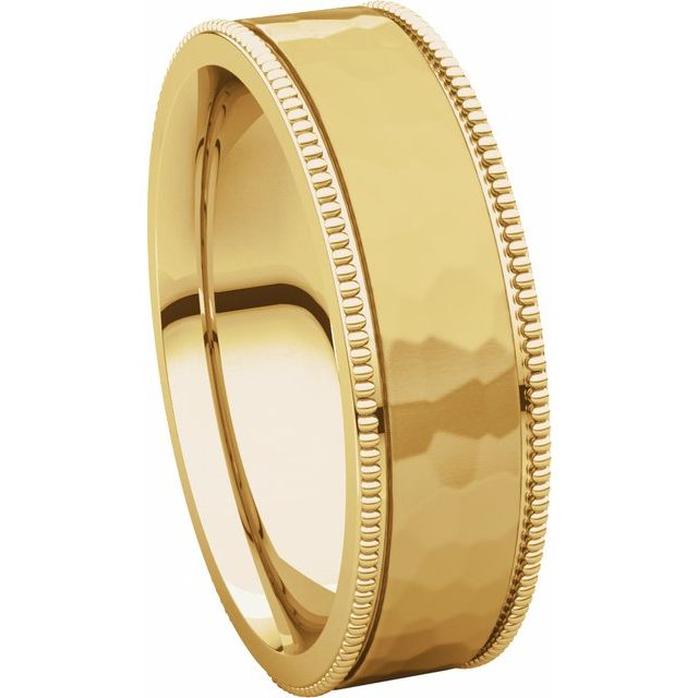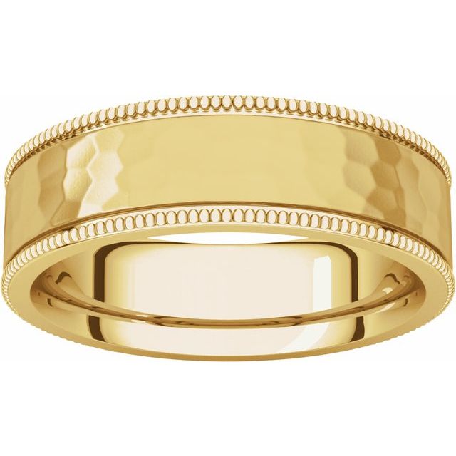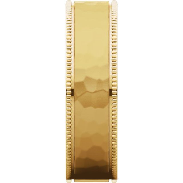 14k Yellow 6 Mm Flat Milgrain Band With Satin & Hammered Texture Size 9