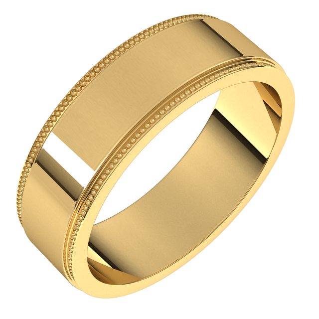 14K Yellow 6 mm Milgrain Flat with Edge Band Size 7