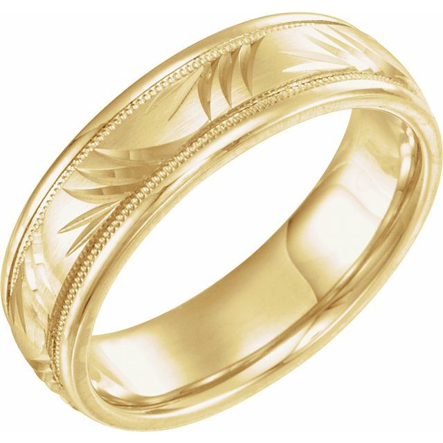 14k Yellow 6 Mm Milgrain Grooved Comfort-fit Band Size 10