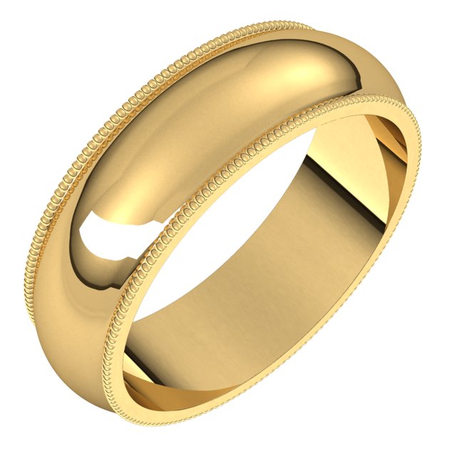 14K Yellow 6 mm Milgrain Half Round Band Size 10